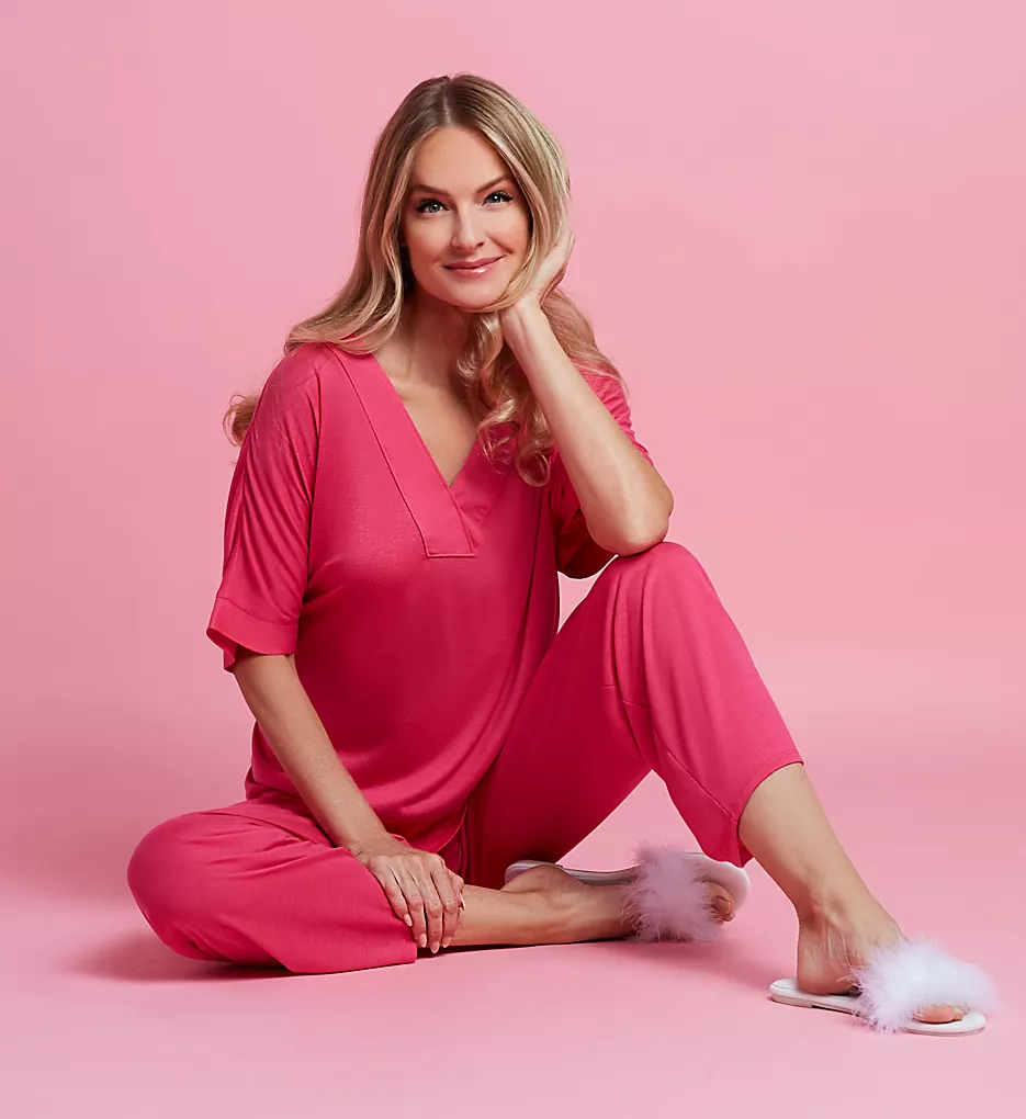 Elevate your evening routine with the N by Natori Congo Kimono Sleeve Pajama Set, designed for the woman who values both style and unencumbered relaxation. This lavishly cut two-piece set offers a sophisticated silhouette that transitions perfectly from a restful night’s sleep to a leisurely morning coffee.