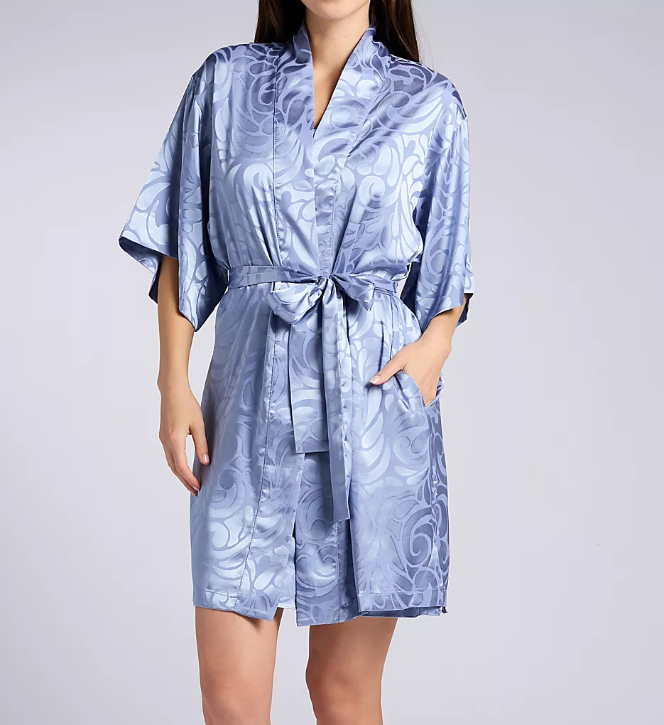 Indulge in the sophisticated shine of the N by Natori Scroll Satin Jacquard Robe. This lightweight short robe is designed for the modern woman who values both style and comfort, featuring a breathtaking contrast between matte and satin textures that creates a luxurious visual depth.