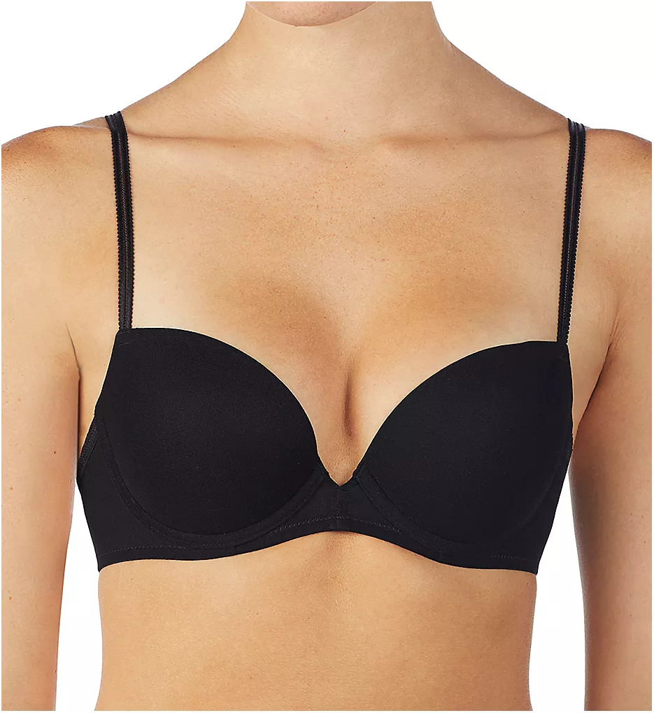 - Contour/t-shirt underwire cup has medium graduated, crescent-shaped push-up padding for lift.
