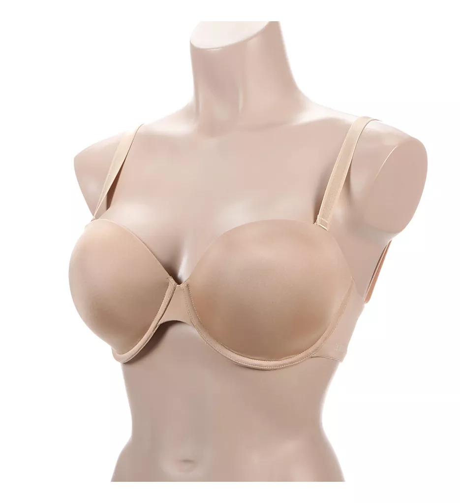 This strapless bra is ultra-soft inside and out, with convertible, removable straps. The cup padding is very thin for modesty without a bulky feel.