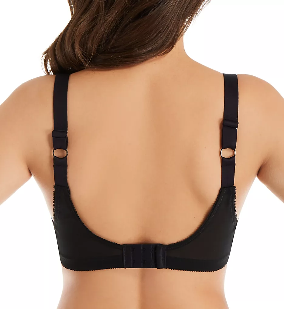 - Embroidered, non-stretch mesh insets at the side of the cup.