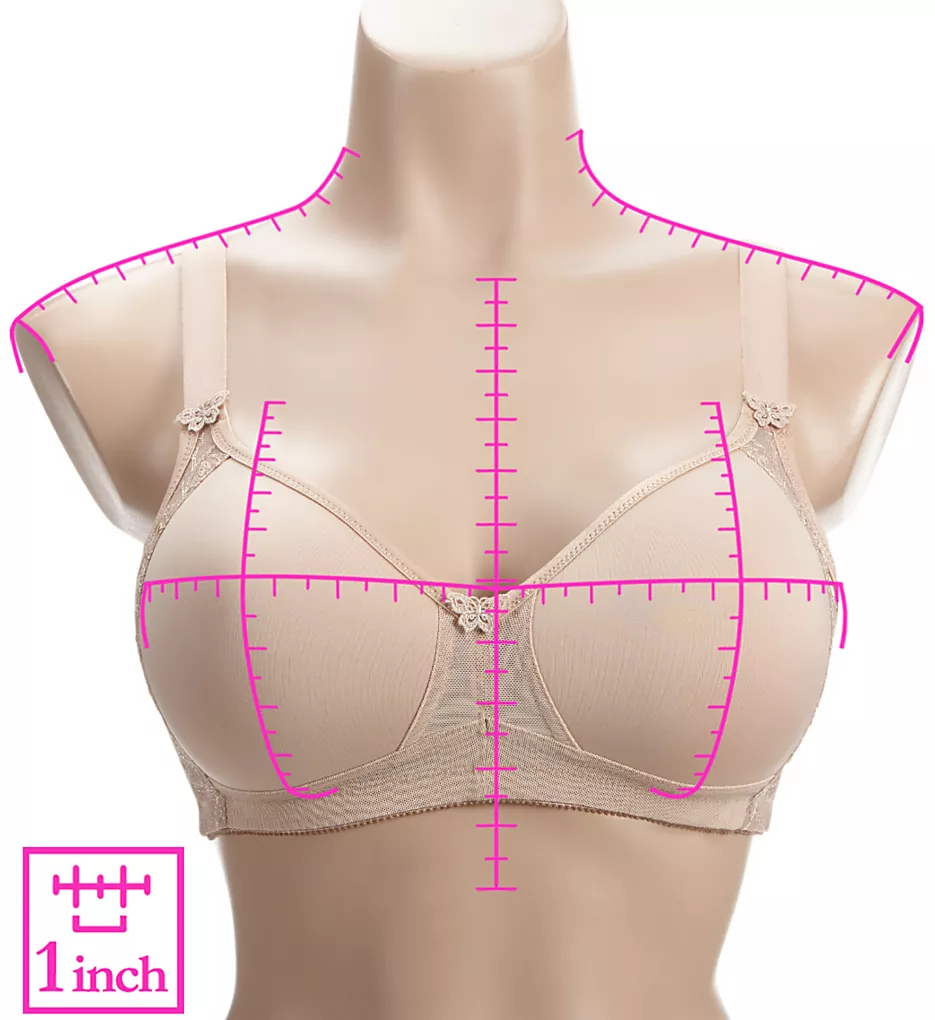 - Center – wide, flexible, breathable mesh panel has a vertical center seam and a horizontal seam to imitate the curve of an underwire casing.