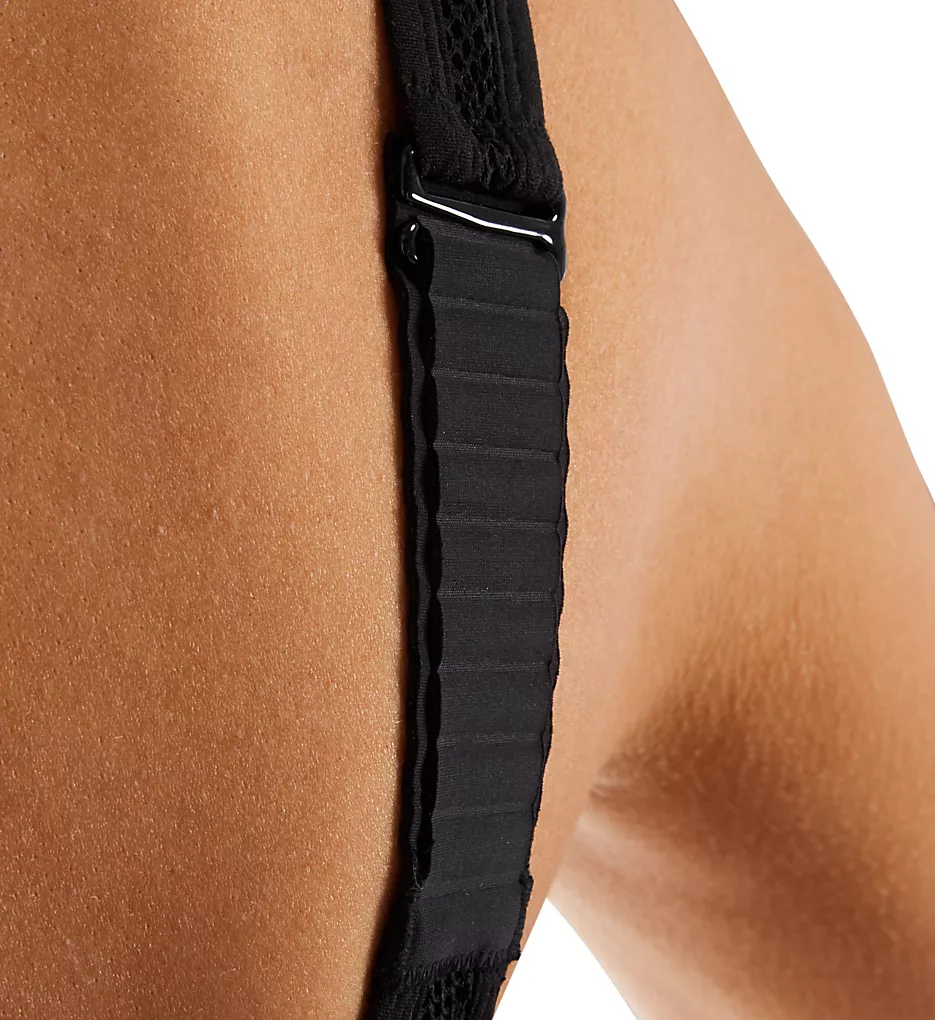 - Wide-set straps have an inflexible mesh lining in front for extra support with elastic edges.