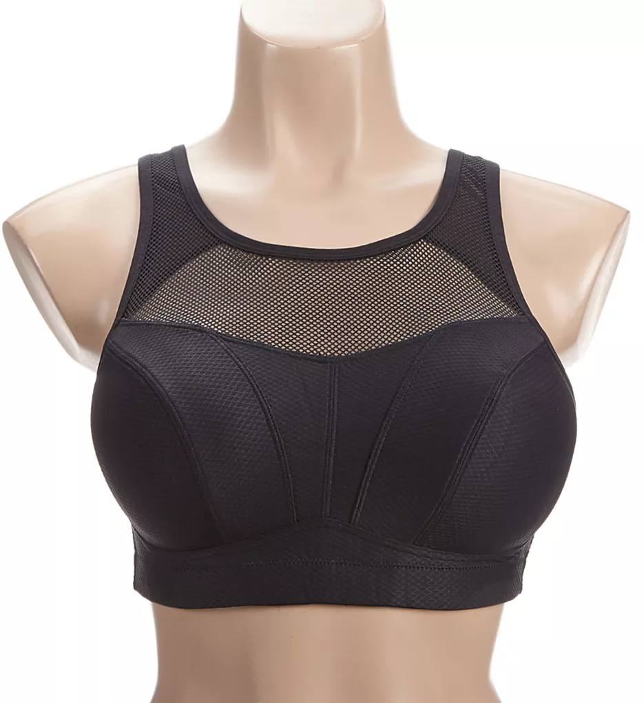 - Upper front is breathable, net mesh for a higher neckline with an elastic edge that scoops slightly.
