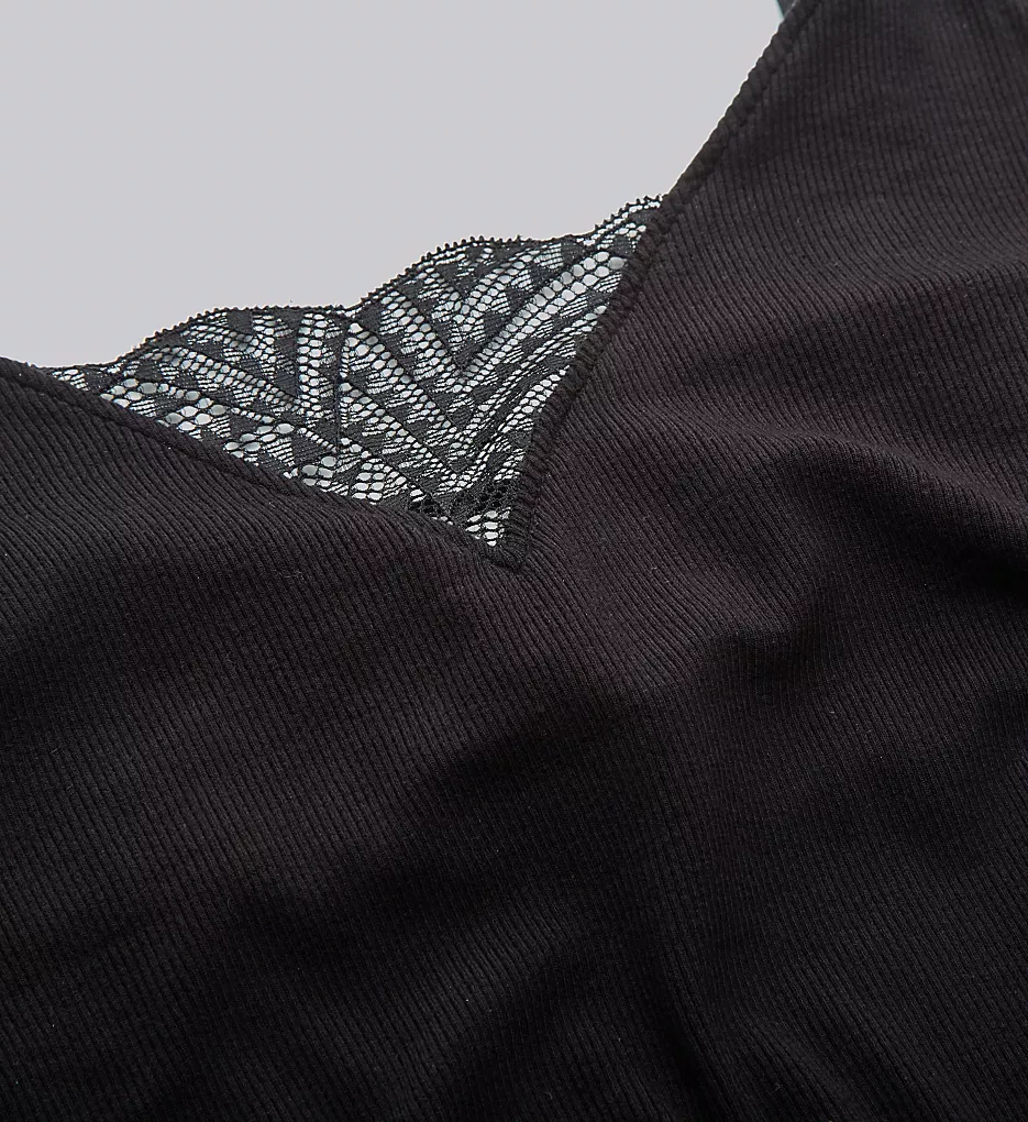 - Feminine Details: A deep V-shaped neckline is highlighted by a sheer lace inset panel, complemented by a graceful side slit also trimmed in matching lace.