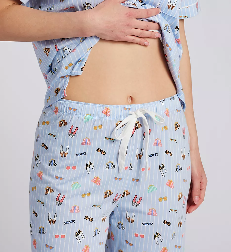 Classic striped pajamas accessorized with assorted accessories and updated crop-length styling. Made of jersey-knit blend of cotton and modal.