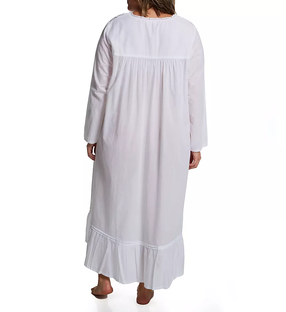 This long-sleeve gown never goes out of style with its floral embroidery, billowy silhouette, and ruffled details at neckline and hem. Crotchet insets and multi-tuck accents gives this gown its timeless look. Made of preshrunk, woven 100% cotton.