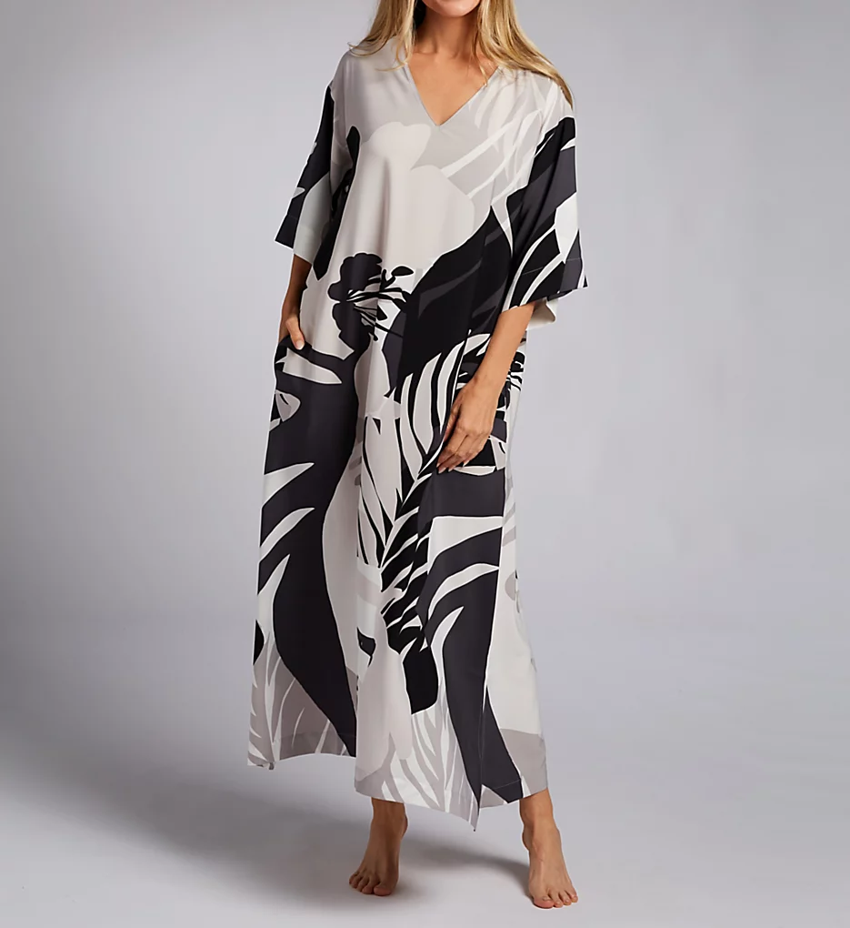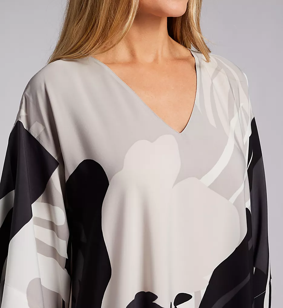 Matte crepe de chine caftan with an elegantly subdued oversized graphic pattern. Made of satin-woven polyester.