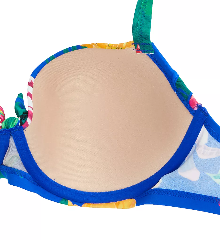 Embrace the island vibes with the Pour Moi Antigua swim top, featuring a vibrant, brightly colored floral and palm leaf print designed to stand out under the sun. This flirty top combines the support of a bra with the aesthetic of a tropical getaway.