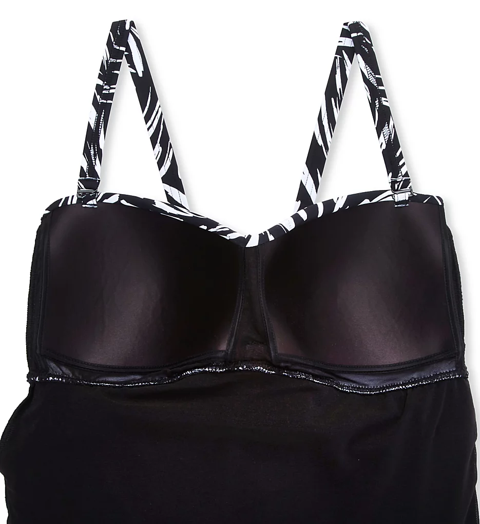 Make a sophisticated splash in the Profile by Gottex Black Swan swimsuit. This stunning one-piece combines a high-fashion abstract brushstroke print with a flattering flyaway mesh overlay that provides graceful movement and extra coverage for a confident poolside silhouette.