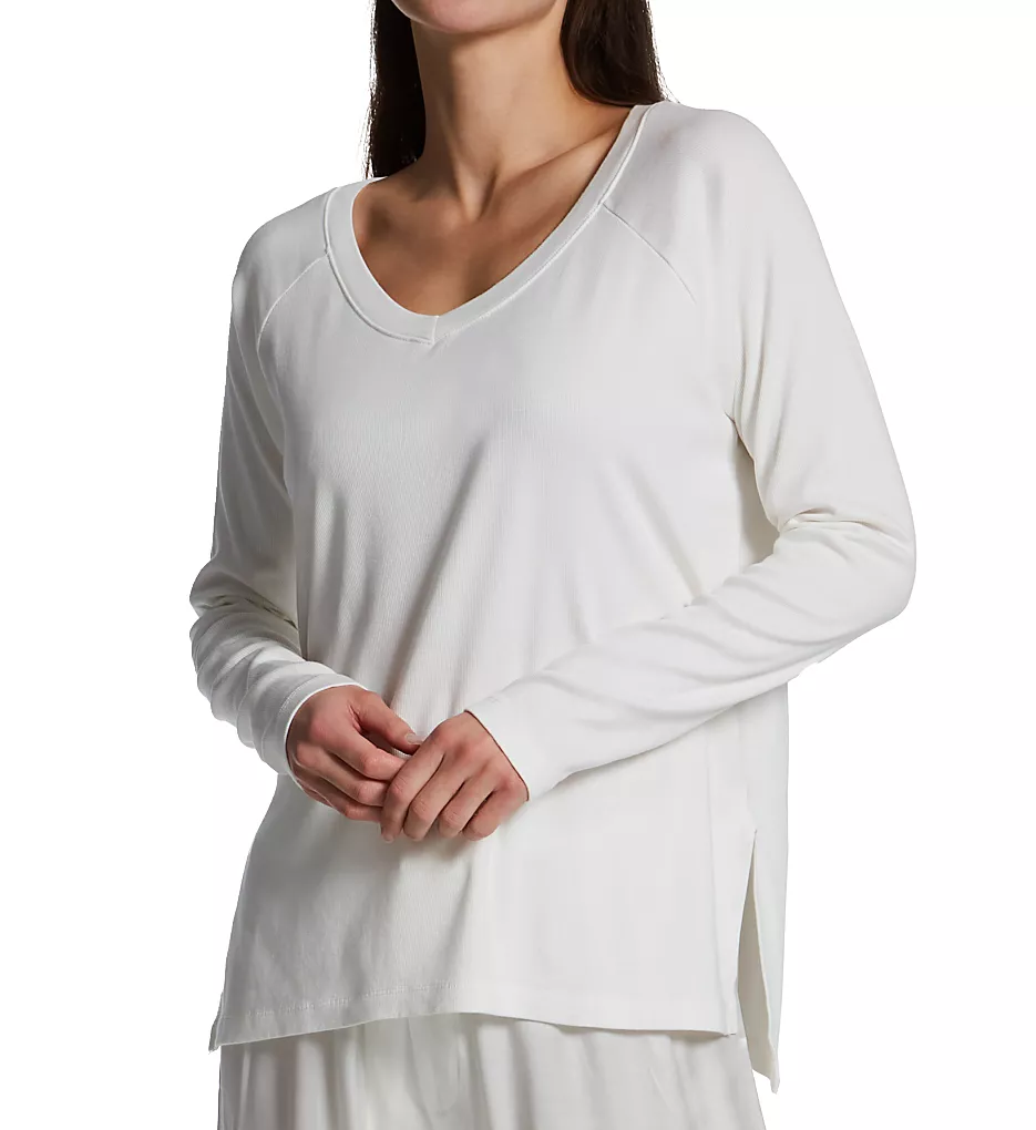 Ultra-soft rib-knit sleep top has classic raglan sleeves and a flattering V-neckline. This versatile top can be worn comfortably for lounge, sleep or casual wear. Made of knit Supima cotton, micro modal and spandex.