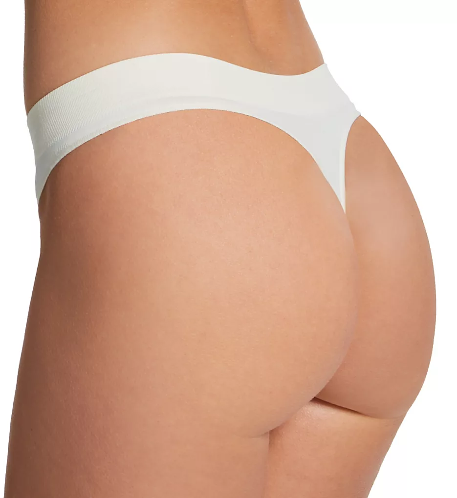 Low rise thong has soft microfiber knit and debossed logo on two-ply waistband. Made of nylon and spandex.
