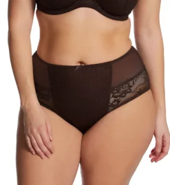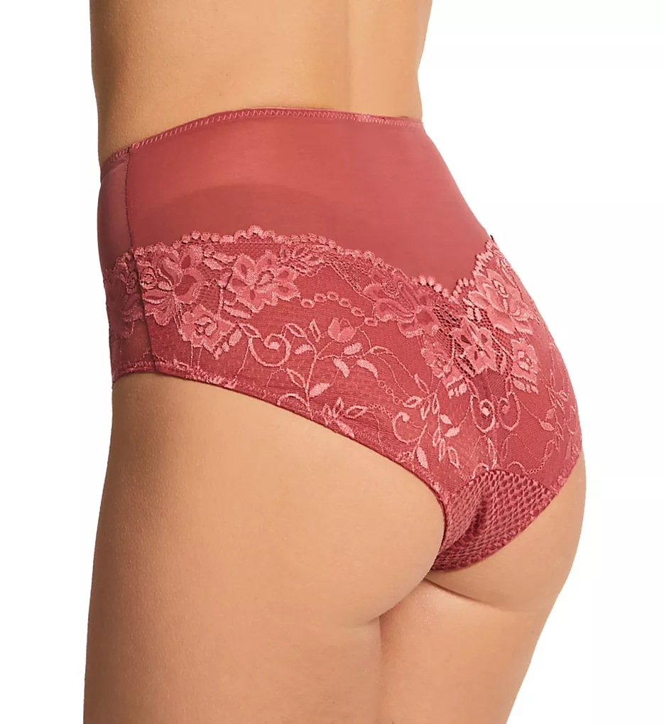 Cute panty has sturdy mesh at center front that gives you a firmer looking tummy. Bottom back of panty is embellished with floral lace for added elegance. Made of nylon, polyester, and elastane.