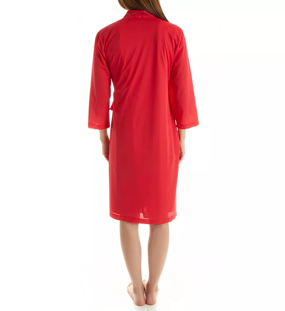 This exquisite wrap robe is defined by its elegant lace inset along the neckline, adding a feminine touch to the classic silhouette. The 3/4 length sleeves offer a versatile look, while the integrated design ensures a perfect fit. Practicality meets style with a hidden on-seam pocket and a secure closure system featuring internal ties and an attached outer belt.