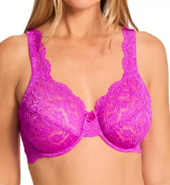 This sexy underwire bra features sheer floral embroidered lace cups and bow at center with faux jewel accent. Made of nylon/spandex.