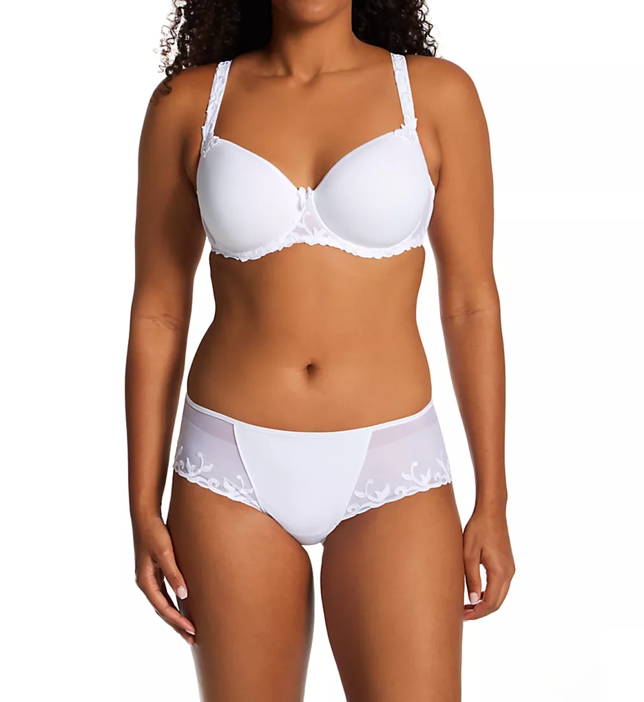 Light and luxurious panty with a sleek modern look. Guipure lace provides distinctive details along the front for just the right amount of pattern. Made of nylon, elastane, polyester, and cotton.
