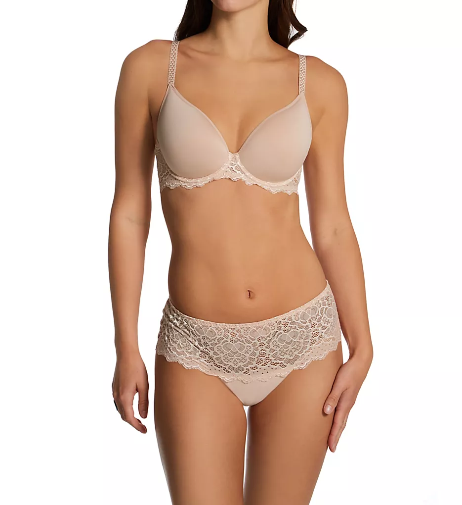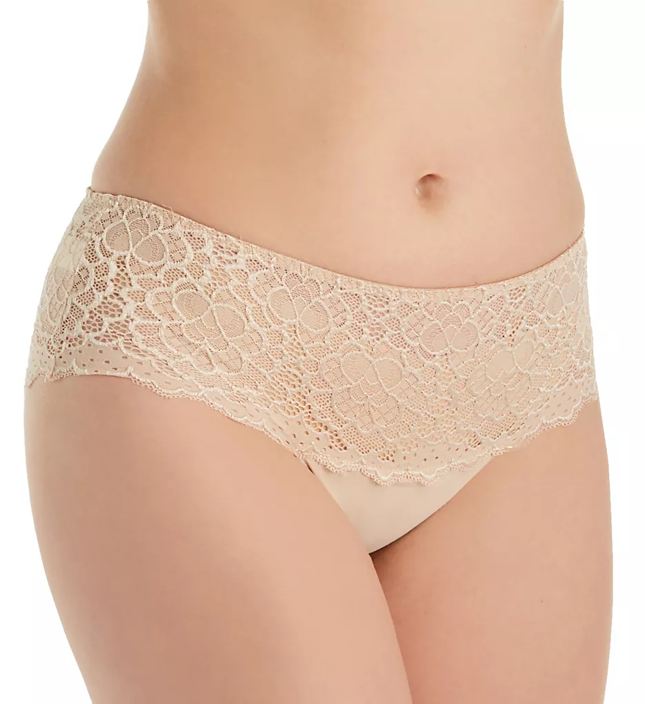 This sexy lace boyshort panty softens every curve. Made of nylon, elastane, cotton and polyester.
