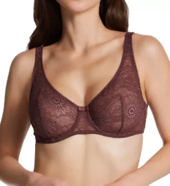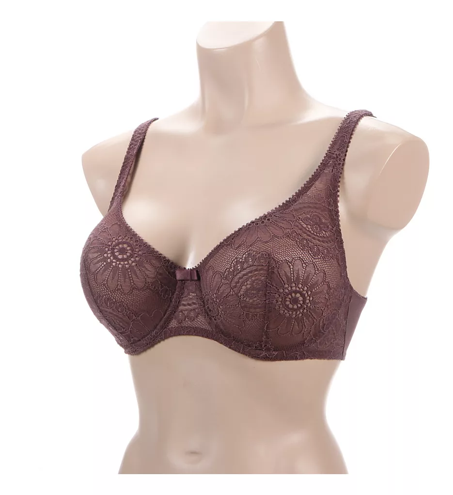 - See-through, sexy Leavers floral lace underwire cups have mesh lining and vertical darts for shape.