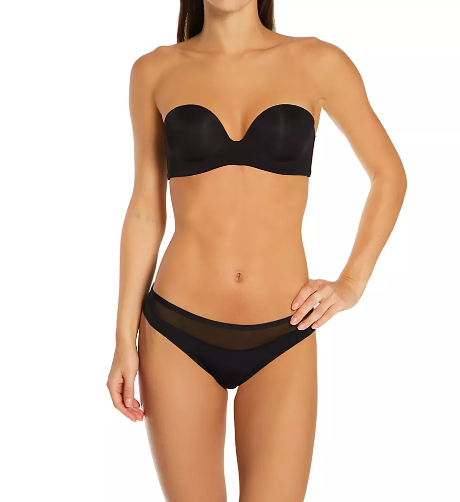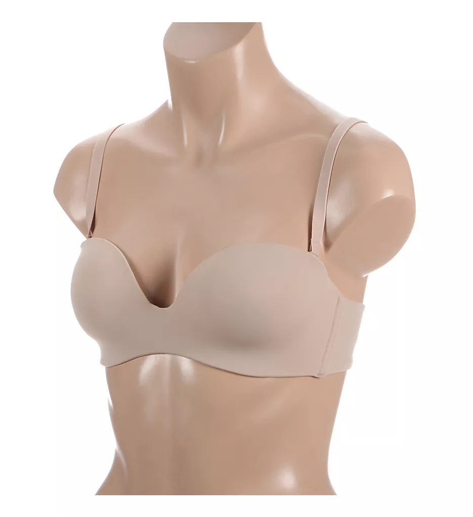 Go strapless in this comfy, t-shirt bra that won’t show up under clothes. If you would like to add the straps, they attach to bra with s-hook and can be worn on the shoulder or crossed in back. Made of polyamide, polyester, elastane, and polyurethane.