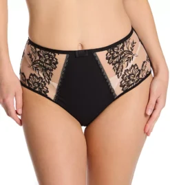 High-waisted brief has a gorgeous pin-up look with sheer sides accented with delicate embroidery. Made of polyester, polyamide, and elastane.