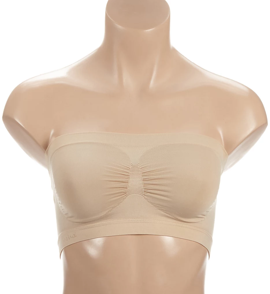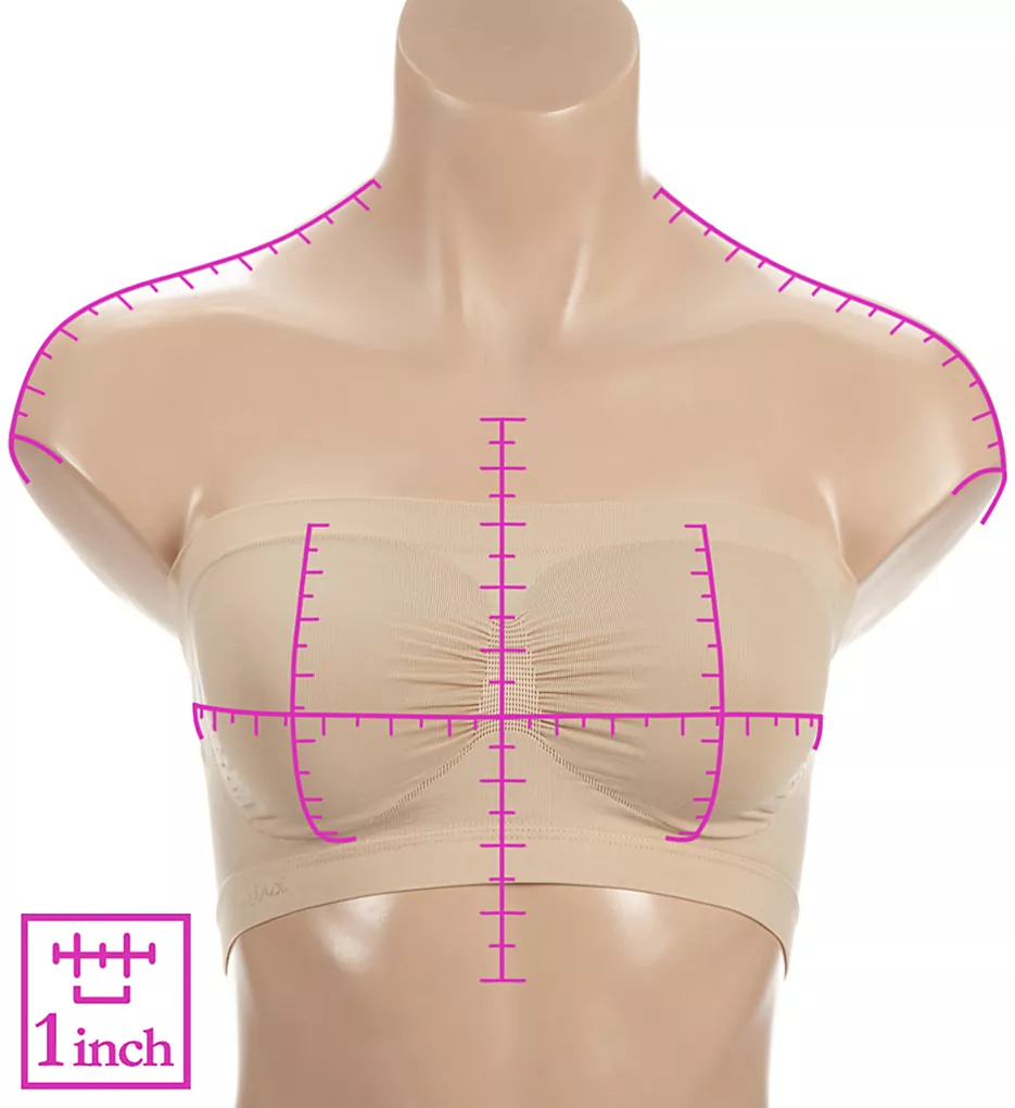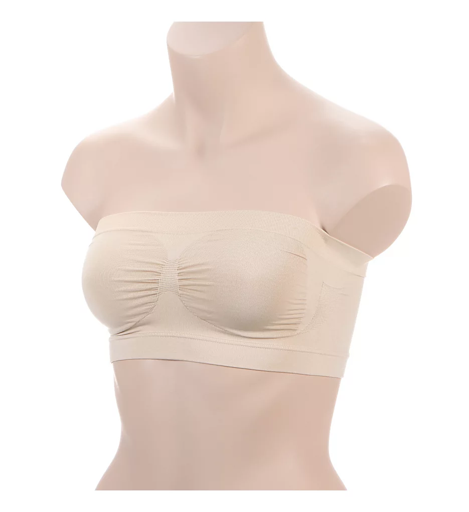 Reduce the appearance of lines and bulges when you put on this wireless, seamless bandeau bra. Made of nylon and spandex.