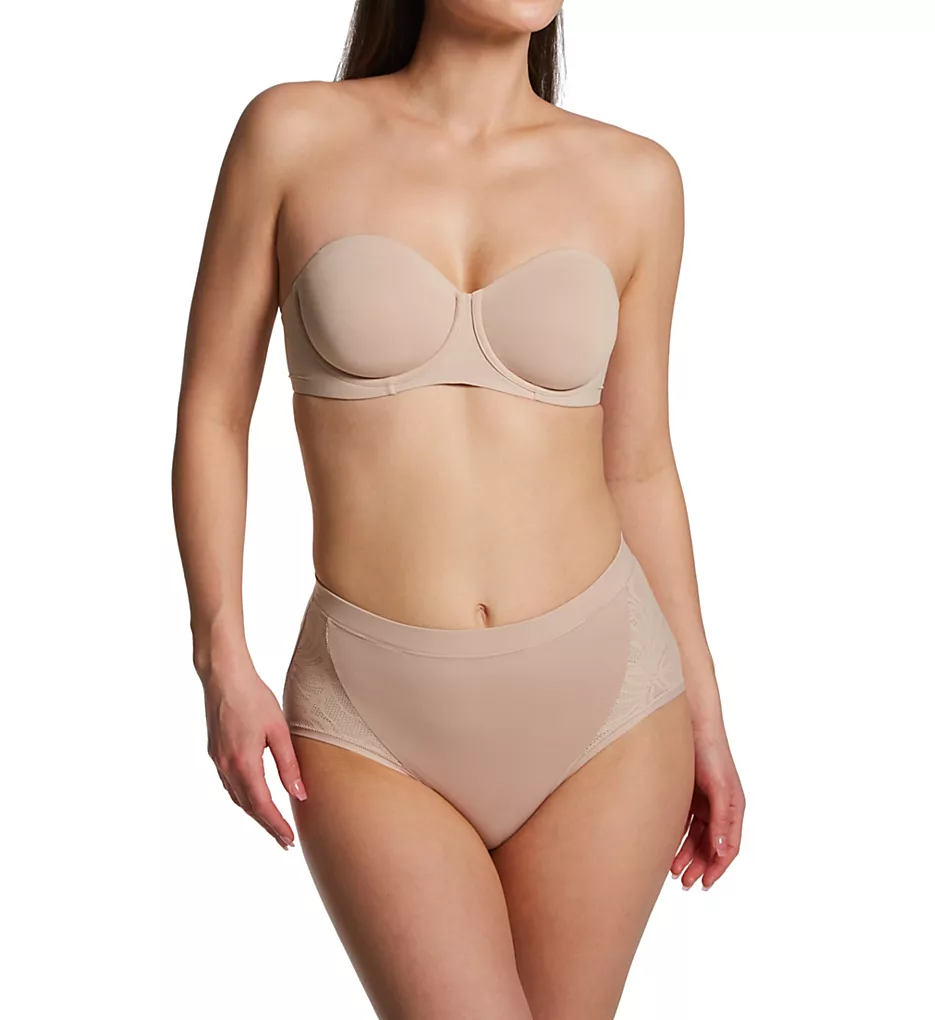 - Sweetheart neckline has a silicone gripper edge to keep fit in place.