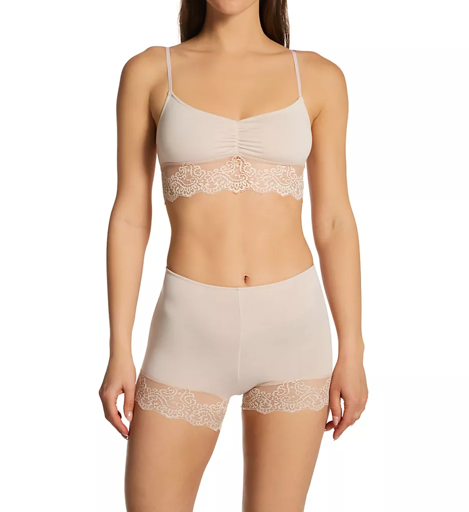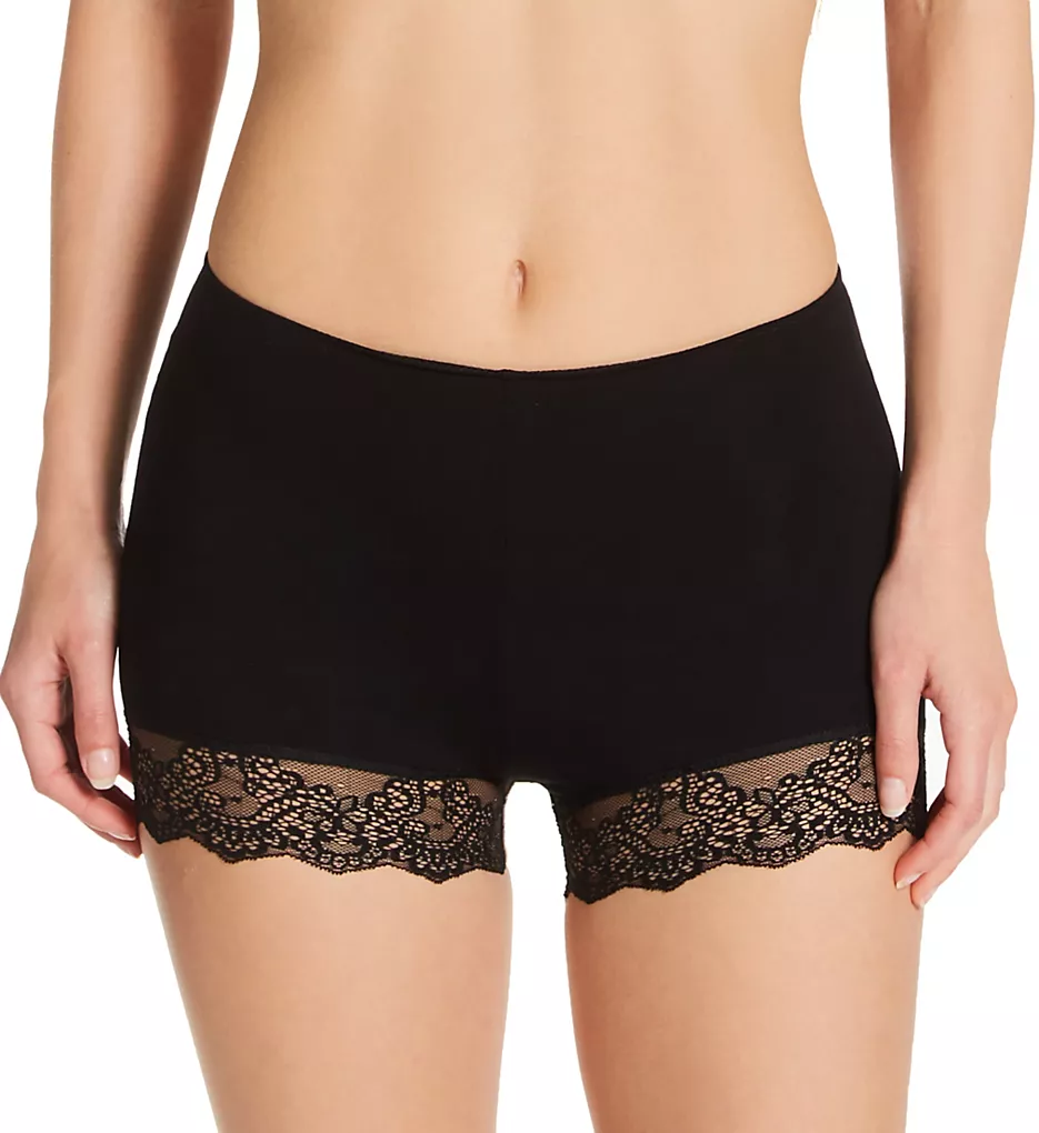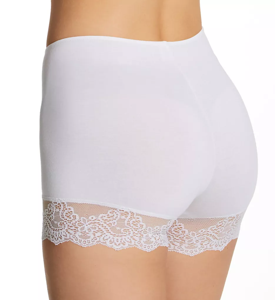 High rise boyshort panties feature lace trim around leg openings for an elegant touch. Made in a jersey knit of rayon with Lycra spandex for stretch comfort.