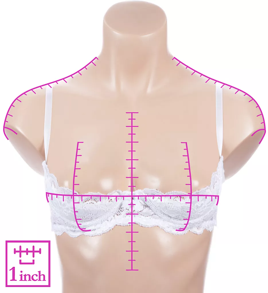 - Underwire cups feature lace and lightly padded panels along underwire that stop just below the nipple.