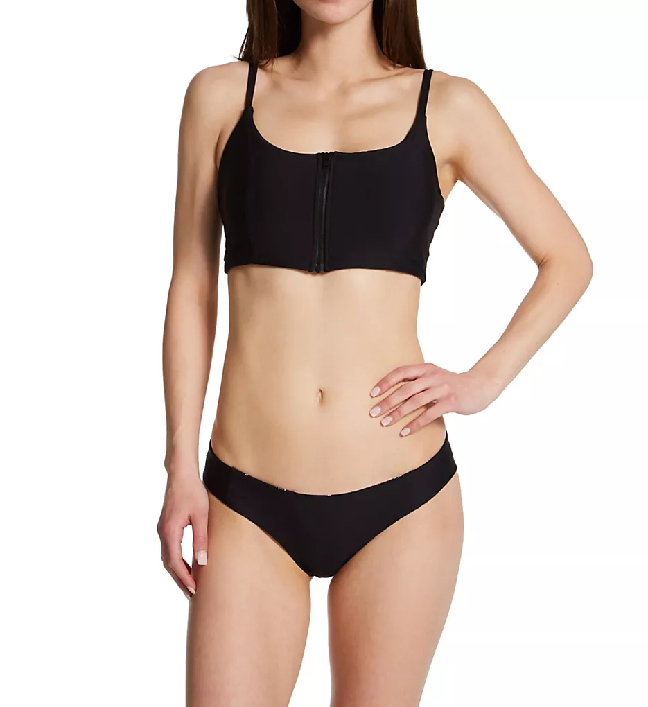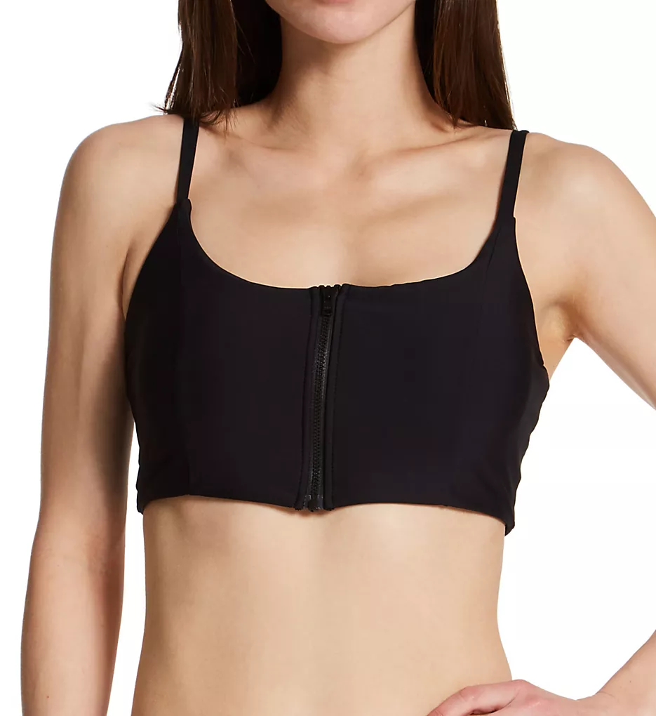 Make a splash with the Swim Systems Sivan Crop Swim Top, a perfect blend of athletic functionality and chic design. This sleek black cropped top is engineered for an active lifestyle, featuring a convenient zip-up front that makes changing effortless while adding a modern industrial touch.