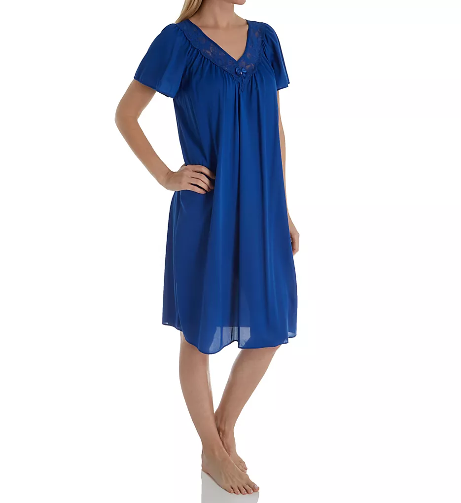 Lovely, light, and loose short nightgown with lace at neck. Made of Opacitrique nylon tricot.