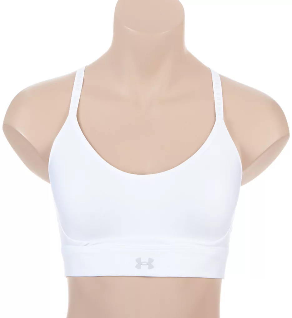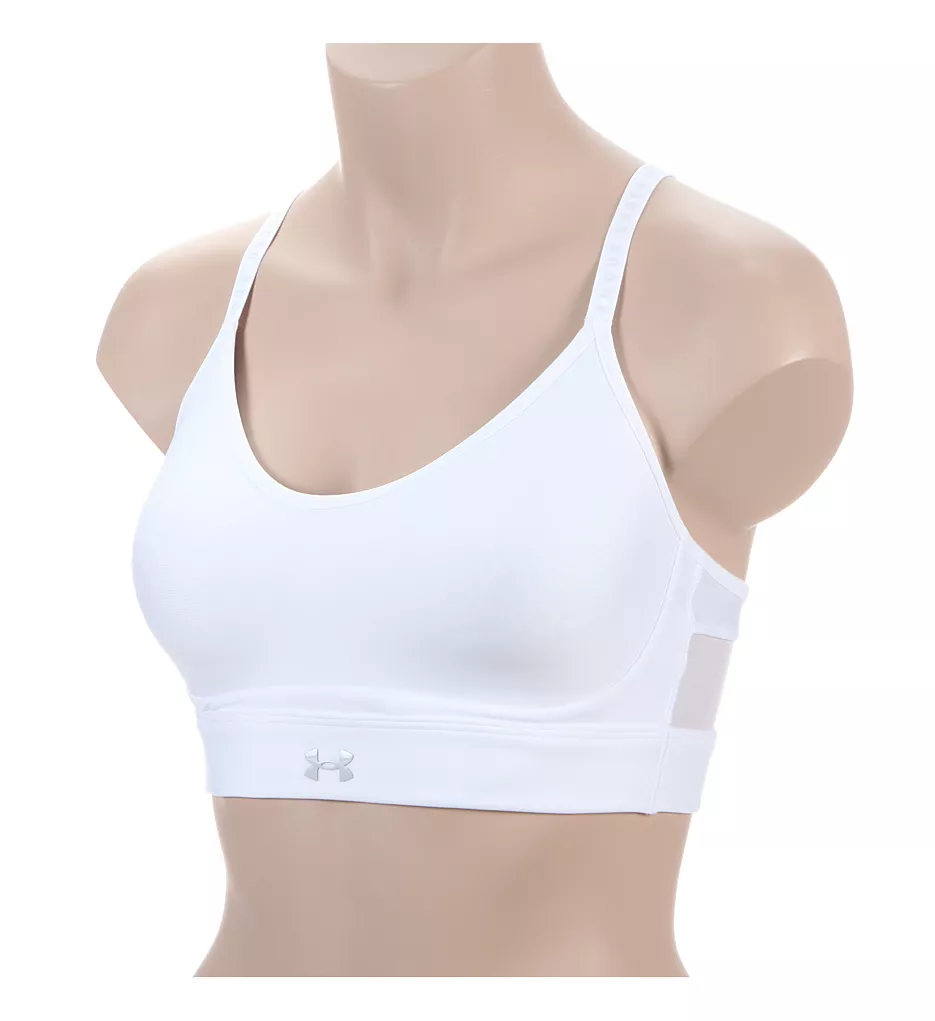 Under Armour knows how to make the perfect bra for daily wear or low impact activities. Patented HeatGear fabric is very soft and wicks away moisture. Breathable wireless cups have ventilated padding with injected eight figure pattern for an improved fit. Mesh racerback has keyhole cut-out. Made of polyester and elastane.