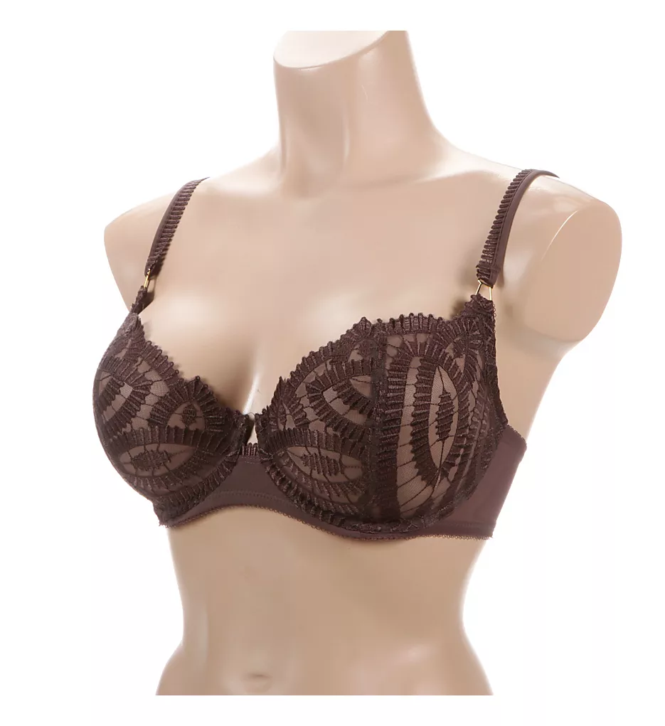 Opulently embroidered sheer cup bra perfectly sets the mood while keeping you supported. Made of polyester, polyamide, nylon, and spandex.