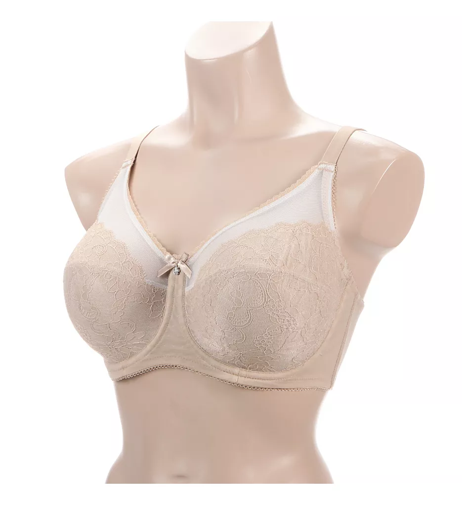 Feel romantic in this retro-chic, full coverage bra, featuring a Chantilly lace overlay on the cups and sheer mesh windows at base of straps. Enjoy its superior lift, shape and support.