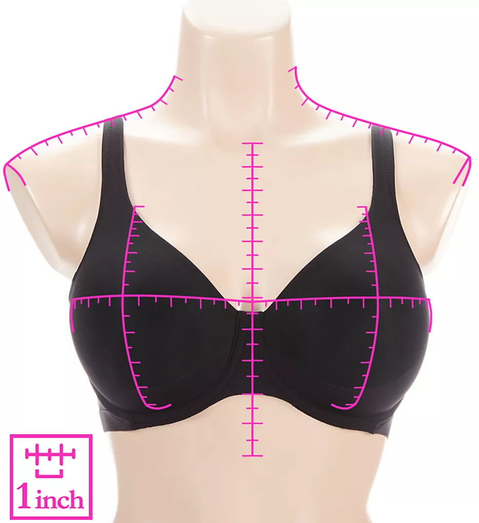 - Molded underwire cups have microfiber lining to shape and support pendulous breasts.