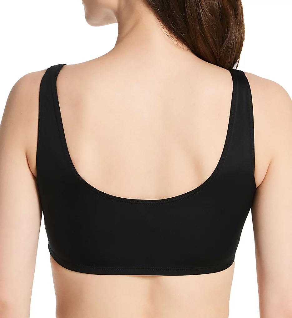 - Scoop neckline has covered elastic edge to keep fit close to the body.